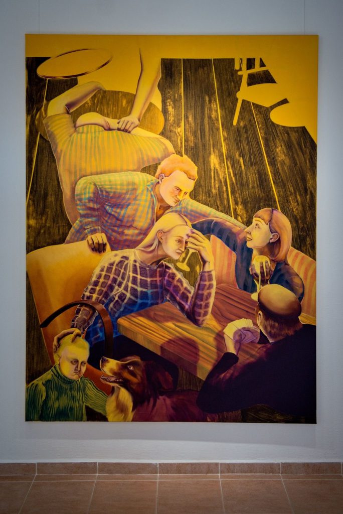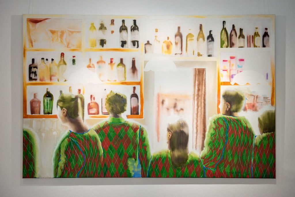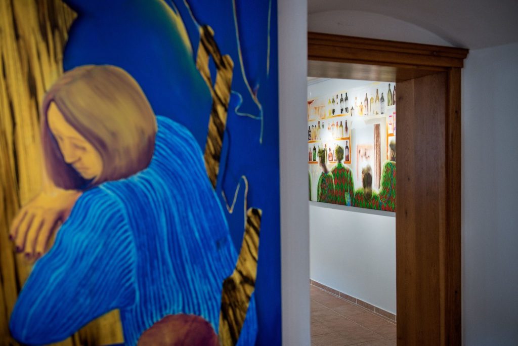 Návštevou galerijných priestorov vchádzame do zdvojeného interiéru miestnosti. Korelácia rozdielnych veľkoformátových i menších malieb svojou inštaláciou stvárňuje konkrétne miesto – podnik, v ktorom autorka dokázala nadobudnúť pocit bezpečia práve v odlúčenom spoločenstve ľudí pravidelne hľadajúcich útechu v neutralite. Niekde, kde nie sú naviazané ťažké spleti ich myšlienok. Niekde mimo domova, práce, na mieste známom s ľuďmi sebe neznámymi. Postupne sa medzi kedysi cudzími buduje puto založené na frekventovanom výskyte v rovnakom priestore. Na zdieľaní tej istej samoty. Výrazným prvkom vizuálneho zobrazenia tohto deja je taktiež dôležitosť plochy a jej charakteristickej podoby odvodenej od osobitných častí i vecí v danom priestore. Postavy aj napriek svojej rôznorodosti splývajú koloritom a materiálnym zachytením komponentov, akými sú napríklad drevená podlaha, vzor textílie nábytku či keramické kachličky.